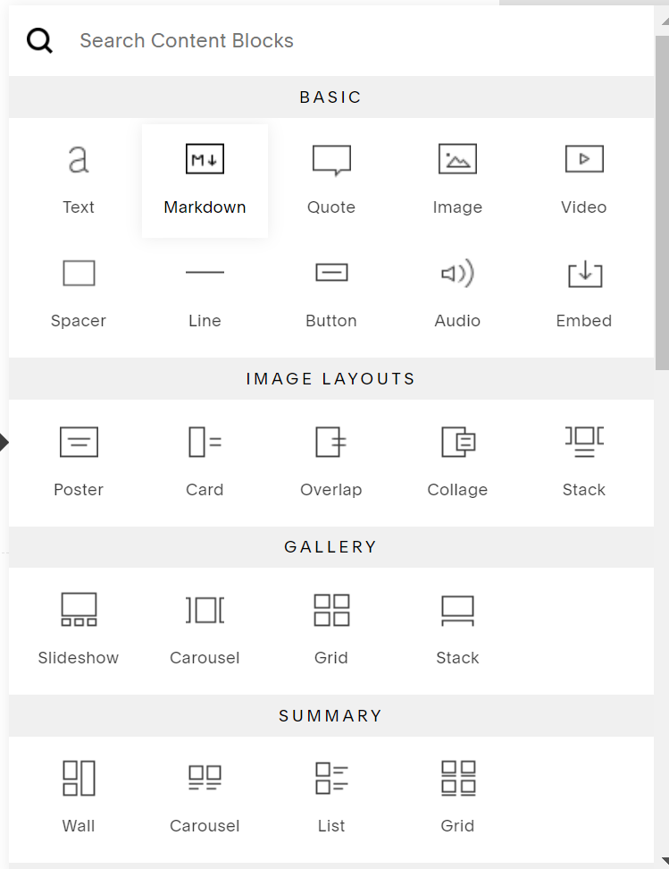 As most of you may know, Squarespace does not offer accordion or dropdown blocks but that has not stop many of us from searching for alternatives whether it’s a code or plugin. We in someway find a way to create what we need to make our website look just how we want. However, if you’re like me and want to find a simple and easy alternative solution that can be easily understood I would recommend using markdown to create a simple accordion. Of course there are ways to improve the look but overall it’s code is easy to apply and edit. I’ve included the code below for you to use on your website. Just copy and paste and add your own title and items.