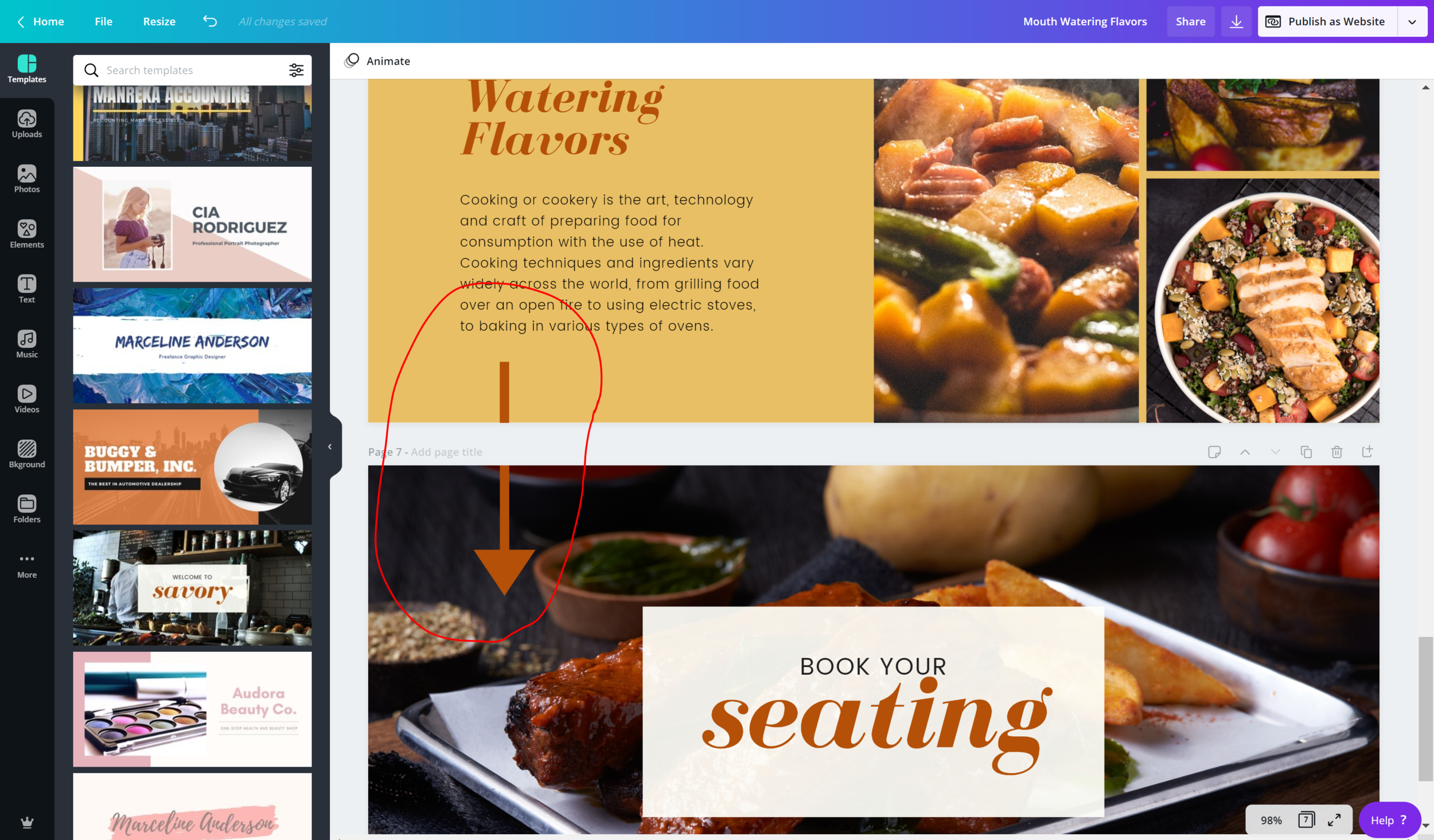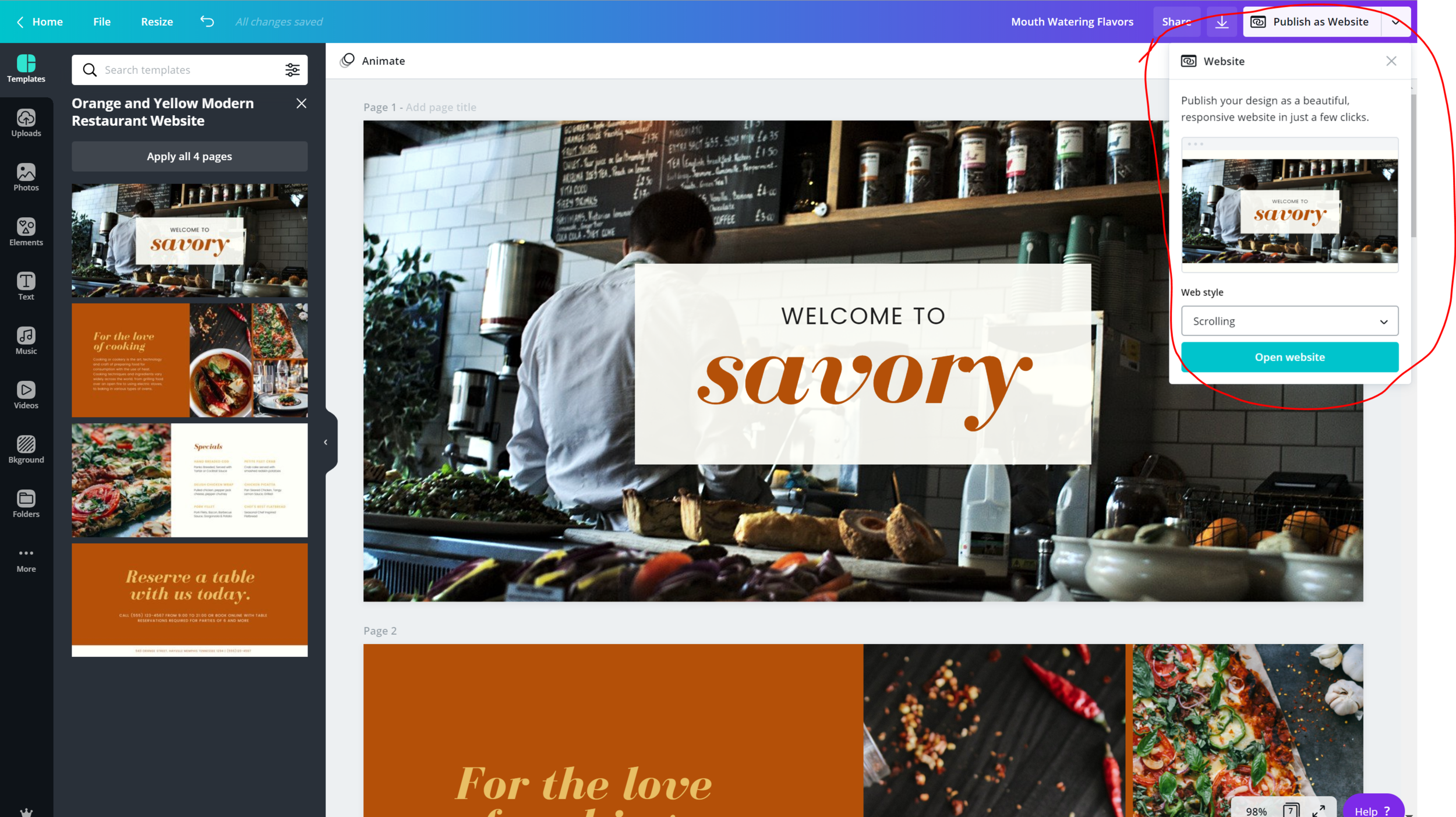 After you have designed your website you are ready to publish it. Something to be aware of is you won’t be able to create your own domain name with this website. It will automatically create a Canva url for it.