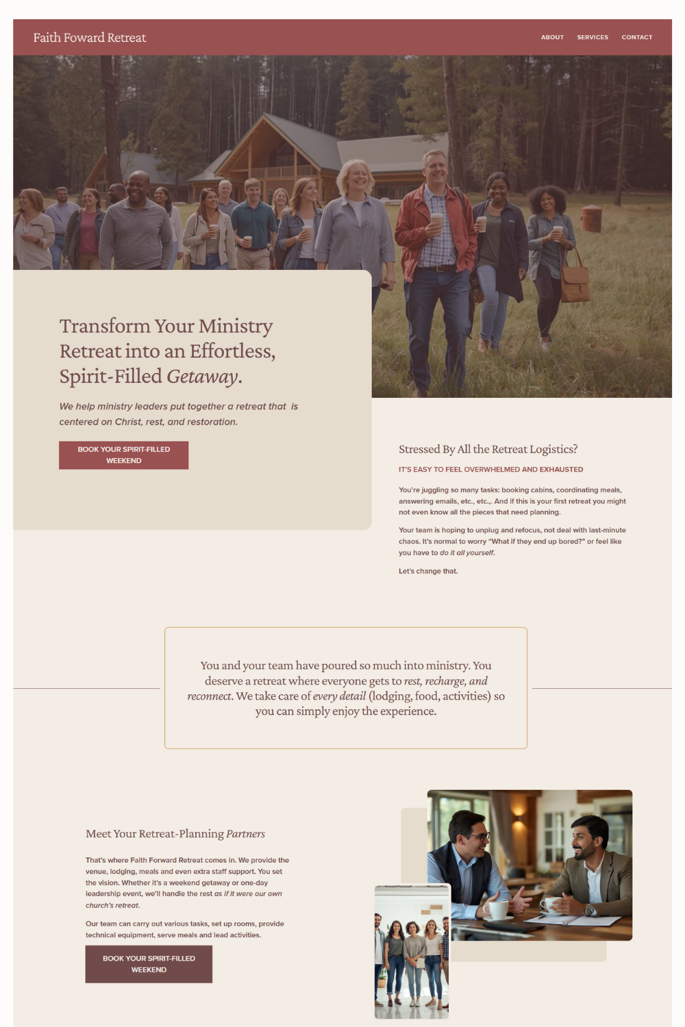 Your online presence is more than a website — it’s your first opportunity to welcome others into your mission. The Faith Forward Retreats Template helps you do just that, beautifully and effortlessly.